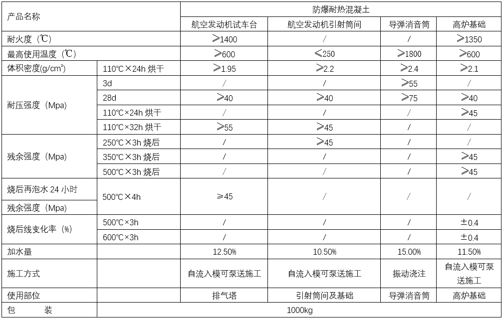 防爆耐熱混凝土是一種能長期承受200℃以上高溫,并在高溫作用下能保持所需物理力學性能的特種混凝土,現已廣泛應用于冶金、化工、石油、軍工、建材等工業的熱工設備,及長期高溫作業的構筑物,如:高爐基礎,熱處理車間耐熱地面 ,鋼鐵廠渣井,高溫鍋爐及工業爐基地,導彈消音筒,航空航天發動機試車臺,煤氣化工火炬基礎等工程。